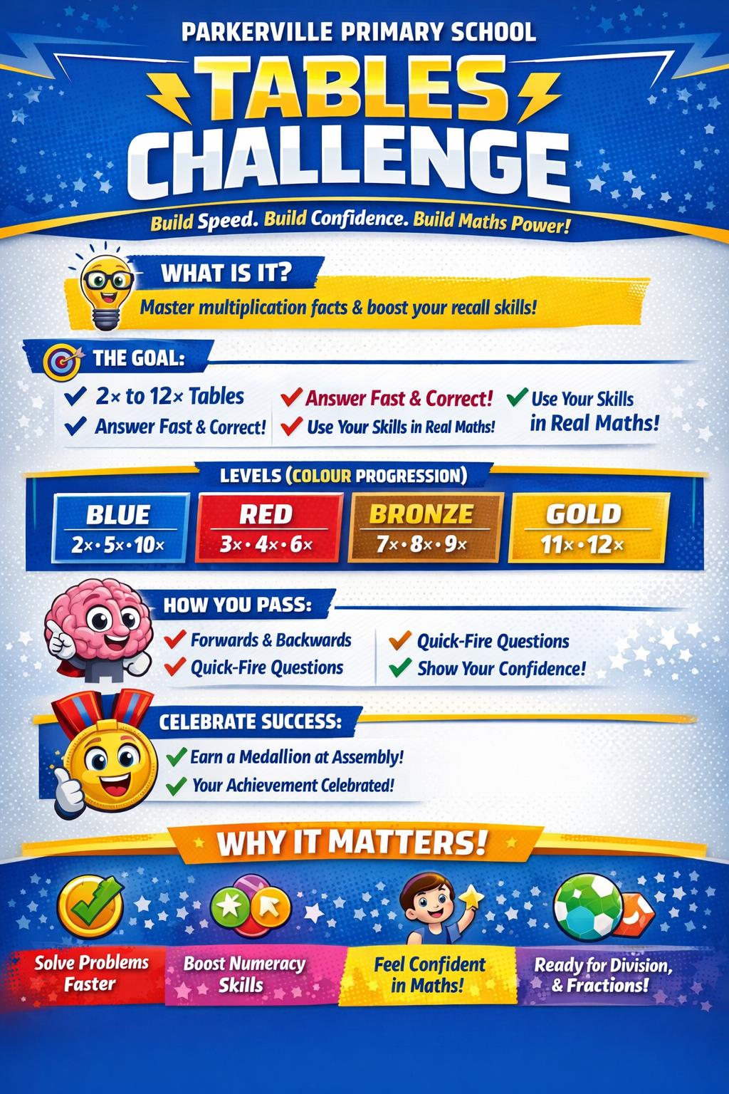 With regular practice using these catchy tunes, students will be well supported in working towards earning their times tables discs that are presented at assembly.