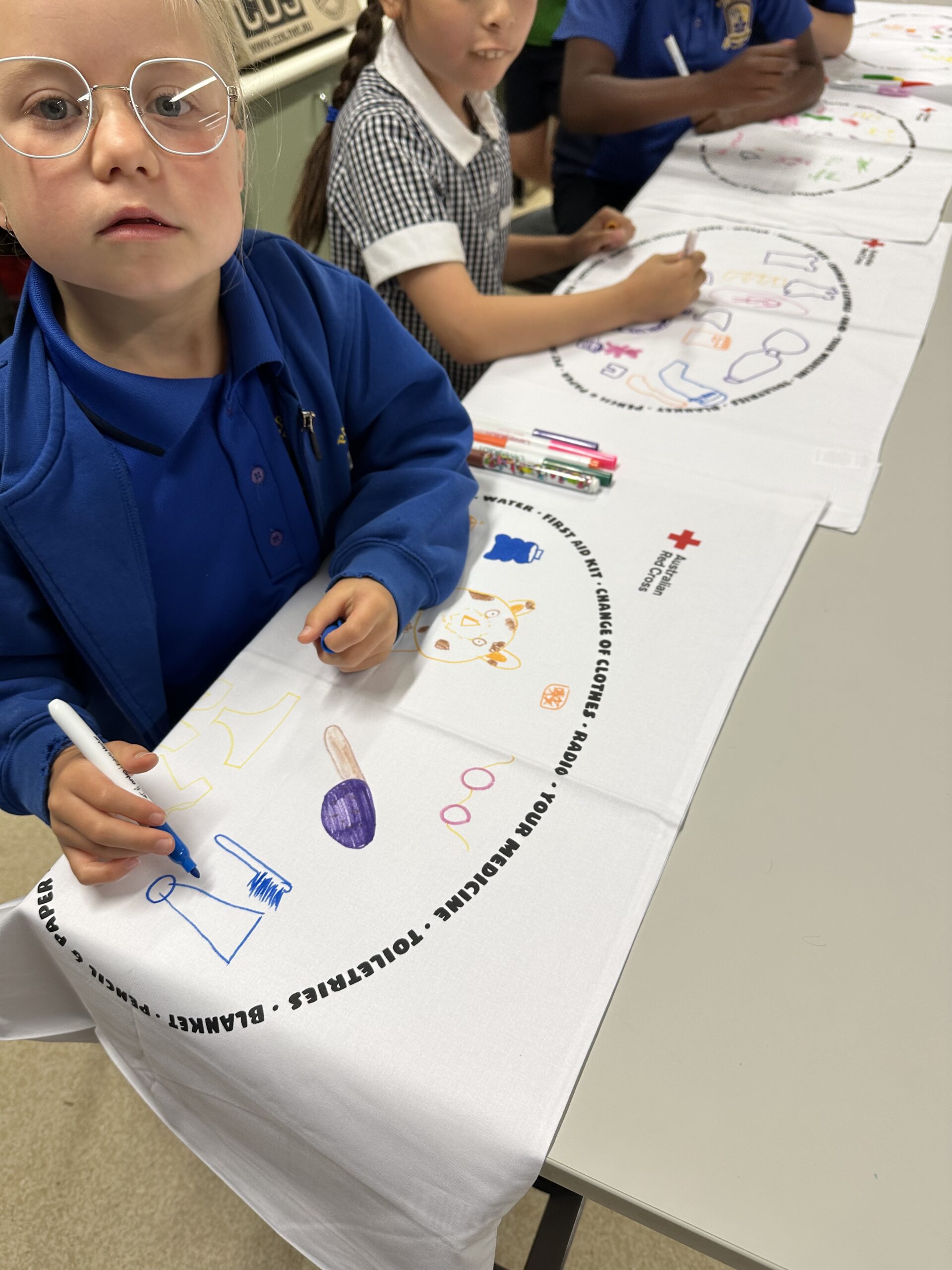 Each student was given a pillowcase to decorate and take home, to start their own personal emergency kit.